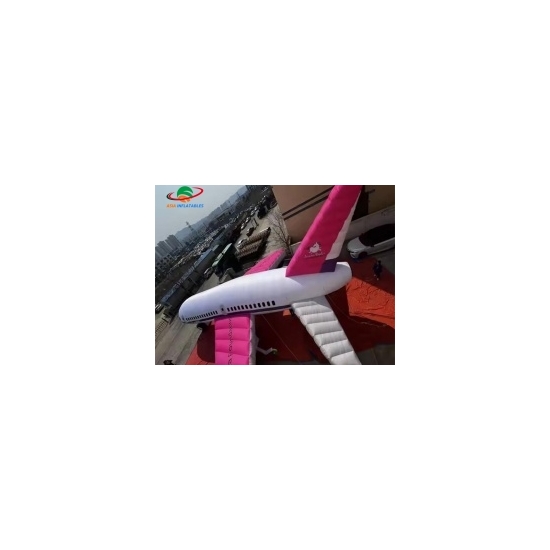 Avião inflável gigante rosa e branco de 3,65 metros para decoração de shopping e eventos promocionais.